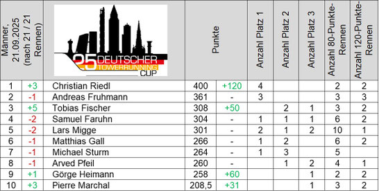Deutscher Towerrunning Cup 2025 - Ranking komplett (Männer)